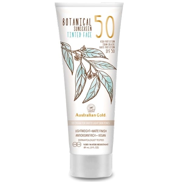 Nyhed Australian GoldAustralian Gold botanical sunscreen tinted face SPF50 fair-lightMineralbaseret ansigtssolcreme med farveLæs mere 50 SPF • 88 ml 299,00 kr. Medlemspris 269,10 kr. Læg i kurv På lager - Levering 1-5 hverdage Fri fragt fra 249 kr. som klubmedlem. Bliv medlem TrustpilotTrustpilot