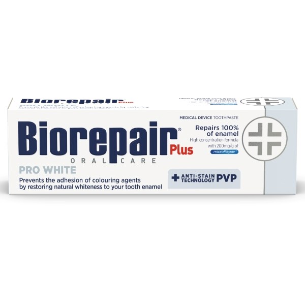 Biorepair PLUS Pro White Tandpasta er en effektiv tandpasta til dig, der har tendens til farvepigment på tænderne. Tandpasten er formuleret med MicroRepair, der reparerer mikroskopiske huller i emaljen.