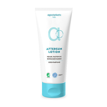 Apotekets Aftersun Lotion er oplagt at benytte efter et ophold i solen. Formålet med aftersun lotionen er at give din hud fugt tilbage og derved bevare hudens elasticitet. Derudover er den også nyttig, hvis du er blevet solskoldet. Aftersun cremen modvirker irriteret og dehydreret hud.