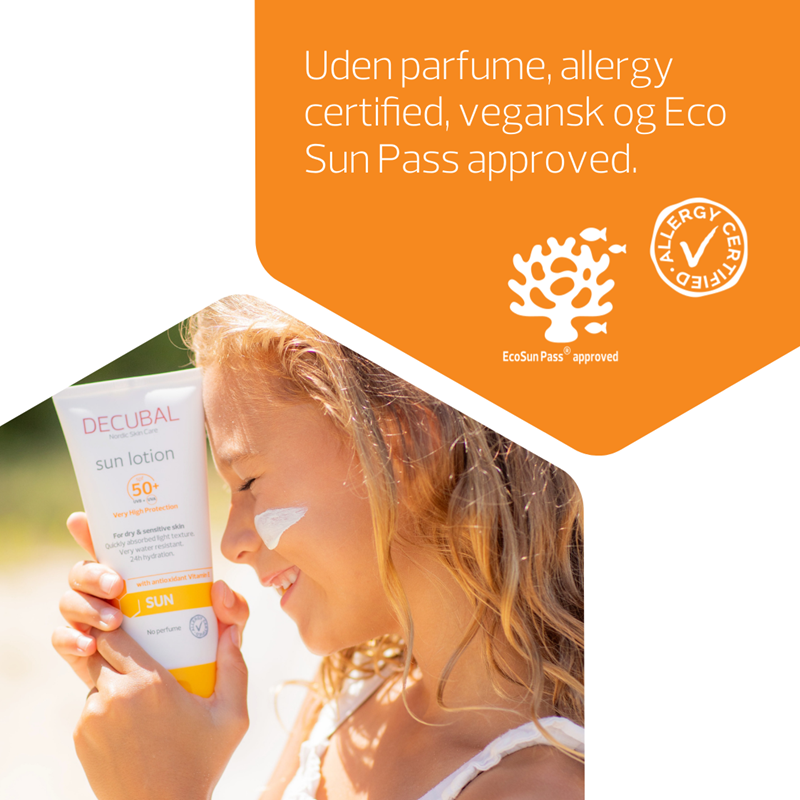 Decubal Sun Lotion SPF 50+ er en sollotion med meget høj beskyttelse til tør og sensitiv hud.