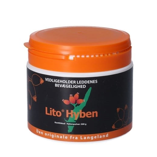 300 gLito Hyben Pulver er et kosttilskud, som er fremstillet af Langeland af Hyben Vital APS efter en patenteret tørrings-/fremstillingsmetode.