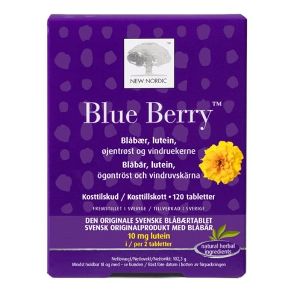 Blue Berry Original er den første tablet på markedet af sin slags. Disse originale svenske tabletter indeholder blåbær, tagetes standardiseret til at indeholde 10 mg lutein, øjentrøst og vindruekerne.