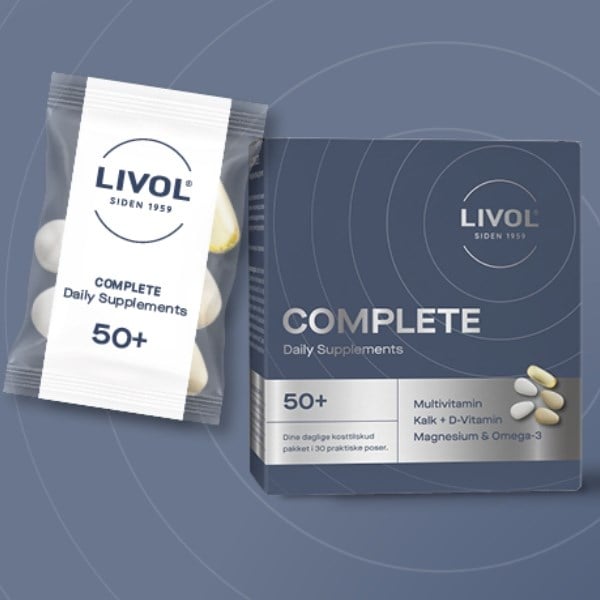 Nyhed LivolLivol complete 50+Dosispakker med Multivitamin, kalk + D-vitamin & Omega-3Læs mere 30 stk. 190,20 kr. Medlemspris 171,18 kr. Læg i kurv På lager - Levering 1-3 hverdage Fri fragt fra 249 kr. som klubmedlem. Bliv medlem TrustpilotTrustpilot