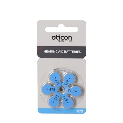 Oticon Høreapparat Batterier 675 indeholder 6 batterier til høreapparater. Batterierne har en blå farvemarkering, så du let kan aflæse, hvilke batterier du skal anvende.