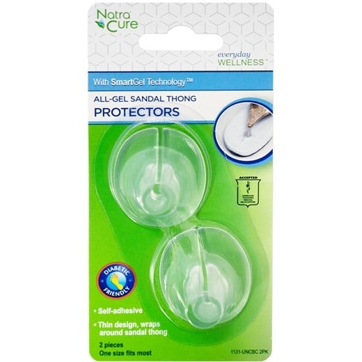 NatraCure Sandal Toe Protectors er en gelbeskyttelse, som er designet specifikt til sidde rundt om tåremmen i sandaler og klipklapper. Tåbeskytteren hjælper med at reducere friktion og irritation mellem storetåen og anden tå på grund af det bløde gel.