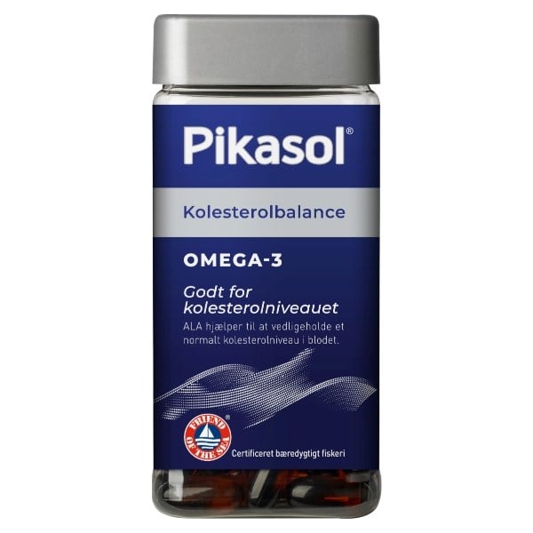 130 stk.Pikasol Kolesterolbalance er et kosttilskud med koncentreret fiske- og hørfrøolie samt E-vitamin. Fiskeolie indeholder de vigtige omega-3 fedtsyrerne EPA og DHA og hørfrøolie indeholder ALA, der støtter et normalt kolesterolniveau.