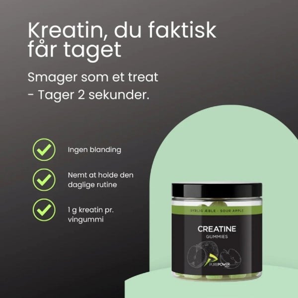 Nyhed Pure PowerPure Power creatine gummies sour appleKreatintilskud i vingummiformLæs mere 60 stk. 279,00 kr. Medlemspris 251,10 kr. Læg i kurv På lager - Levering 1-3 hverdage Fri fragt fra 249 kr. som klubmedlem. Bliv medlem TrustpilotTrustpilot
