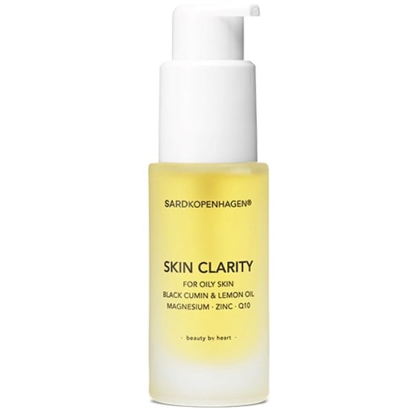 SARDkopenhagen Skin Clarity er en ansigtsolie til uren, fedtet og kombineret hud. Olien indeholder en blanding af naturlige ingredienser, herunder sortkommenolie, arganolie og æterisk citronolie, der medvirker at hudens talgproduktion reguleres samt hjælper med at minimere grove porer, reducere urenheder og mindske udviklingen af propionibakterier, der forårsager akne, dybt i huden.