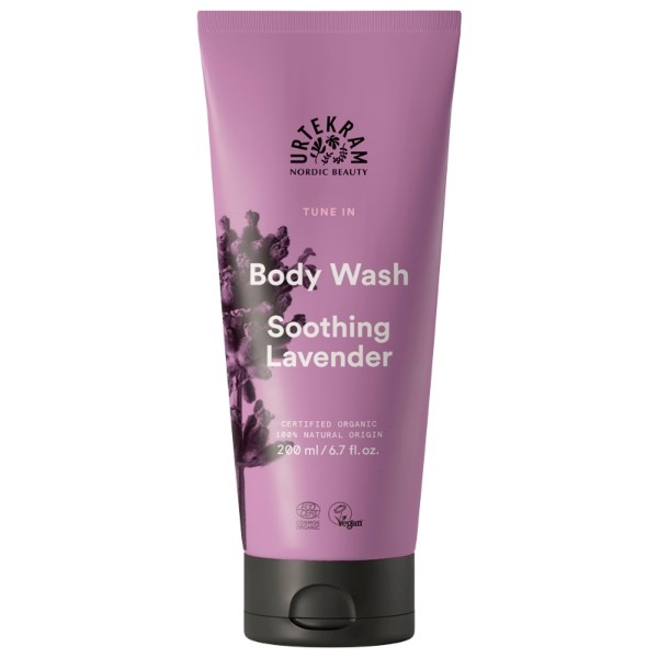 Urtekram Tune In Body Wash er en rensende kropssæbe med en duft af lavendel. Bodywashen indeholder fugtgivende og nærende ingredienser såsom aloe vera, hyaluronsyre, glycerin og naturlige olier, der plejer og beskytter huden.
