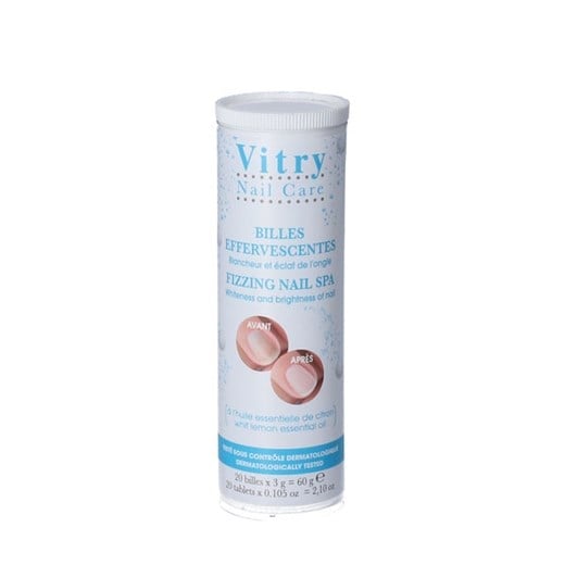 Vitry Fizzy Nail Spa er blegende brusetabletter til neglene, som er enkelte at anvende og giver et resultat af hvidere negle, renere fingre og blødere neglebånd. Tabletterne er formuleret med det anti-inflammatoriske tea-tree olie og rensende citronolie.
